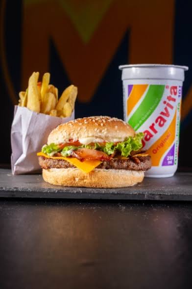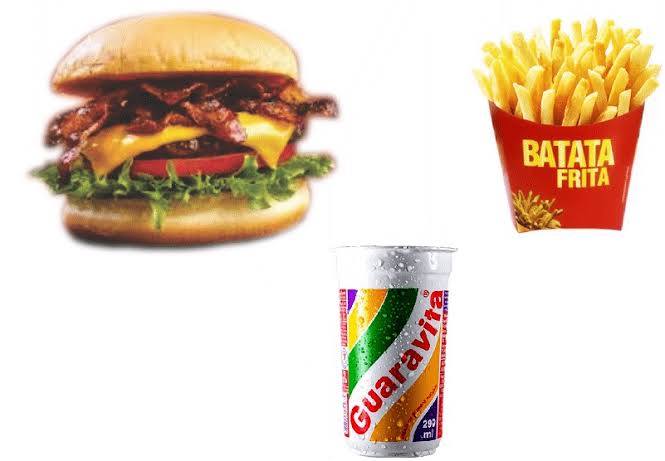 | Pão, carne, ovo, queijo, presunto, 2x bacon, alface, batata palha e molho + Batata P + Guaravita |